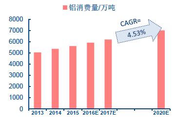 2013-2020年全球鋁消費(fèi)量預(yù)測(cè)